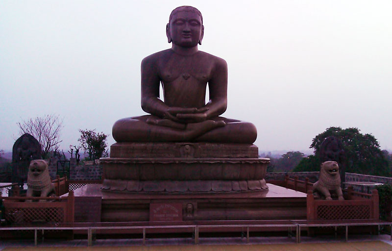 Ahinsa sthal is a jain temple which is located on the intersection of Badarpur road and Aurobindo marg in Mehrauli, Delhi. The temple is a religious place for people of jain community. The main idol in this temple is of Lord Mahavira who was the 24th and last teerthankar of jain religion. The idol is made of granite stone. The height of the idol is 13 feet and 6 inches and it weighs around 30 tonnes. The idol is placed on the base of lotus whose height is 2feet and 8 inches and weighs around 17 tonnes. There are also two idols of lions placed one each around the each side idol of the deity.