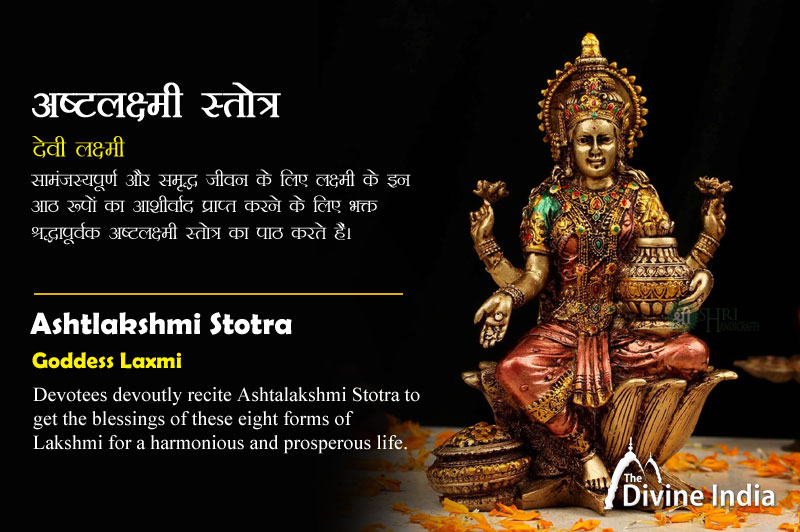 Devotees recite the Ashtalakshmi Stotra with devotion to invoke the blessings of these eight forms of Lakshmi for a harmonious and prosperous life. It is commonly chanted during festivals, pujas, and rituals dedicated to Goddess Lakshmi.