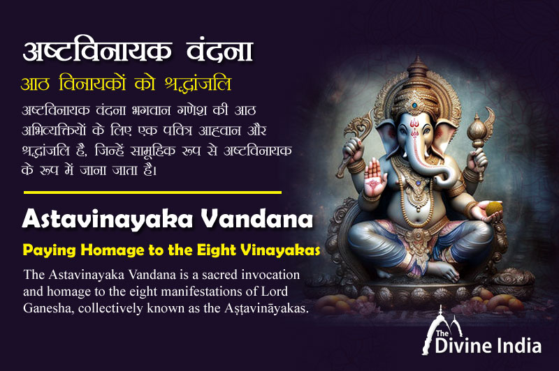 Devotees recite the Aṣṭavināyaka Vandana to seek the blessings and protection of Lord Ganesha in all aspects of life. By invoking the Aṣṭavināyakas, devotees aim to overcome obstacles, receive divine guidance, and attain success and prosperity. This vandana is often chanted during Ganesha festivals and auspicious occasions, serving as a reminder of Ganesha's benevolence and his ability to remove hurdles on the spiritual and material paths.