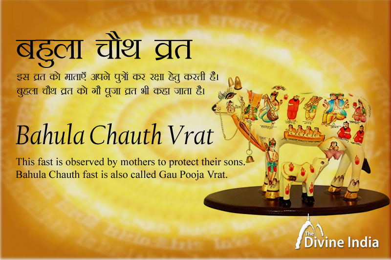 Bahula Chauth is fasted on the Chaturthi of Krishna Paksha of Bhadrapada. This fast is observed by mothers to protect their sons. Items made of wheat and rice are prohibited on this day. The law of worshiping a clay statue of cow and lion is prevalent. This fast is also called Gau Pooja Vrat. Consumption of cow products is considered prohibited. It is believed that only the calves have the right over the milk of this cow. Fasting on this day gives the child of a child a child.