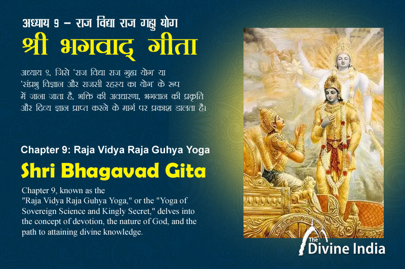 Within Chapter 9, Krishna reveals a profound secret – the "Raja Guhya" – a kingly secret that leads to the ultimate realization. He explains that those who truly understand his divine nature and approach life with devotion and humility become recipients of his grace. Such individuals find refuge in the divine presence and attain liberation from the cycle of birth and death.