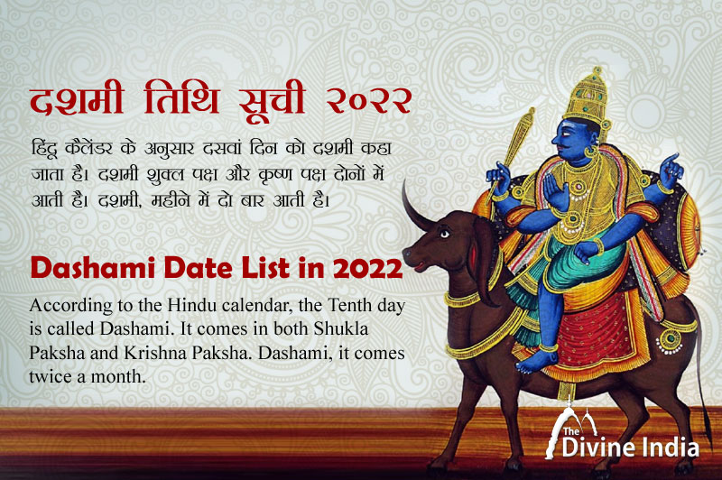 According to the Hindu calendar, the tenth day is called Dashami. Dashami falls in both Shukla Paksha and Krishna Paksha. Dashami comes twice a month. Dashami has its own special significance in Hinduism. The famous festivals falling on Dashami Tithi are Vijay Dashami and Ganga Dussehra. Yamraj is worshiped on the day of Dashami. Worshiping Yamraj gives freedom from the fear of death.