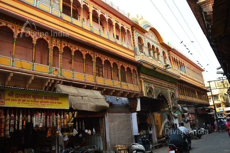 The Dwarkadhish temple is a Hindu temple dedicated to the Lord Krishna. Dwarkadhish Temple is one of the major pilgrimages of the Hindus. The temple located in the city of Mathura in Uttar Pradesh, India and along the Yamuna River which is on the edge of the city's main (Vishram Ghat) pier. The temple is famous in northern India and its current structure was established by Seth Gokul Das (the treasurer of the Gwalior Estate) in 1814. In 1930, the temple was gifted to Pustimarga Girgharlal Acharya ji, from Kankroli for worship service and since then Lord Krishna was worshipped according to them. Lord Krishna worshipped here by the name Dwarkadhish, or 'King of Dwarka' and thus name was given to the temple. The main attraction of the temple is the beautiful deity of Lord Krishna which is made up of black marble and deity of Radharani, made up of white marble.