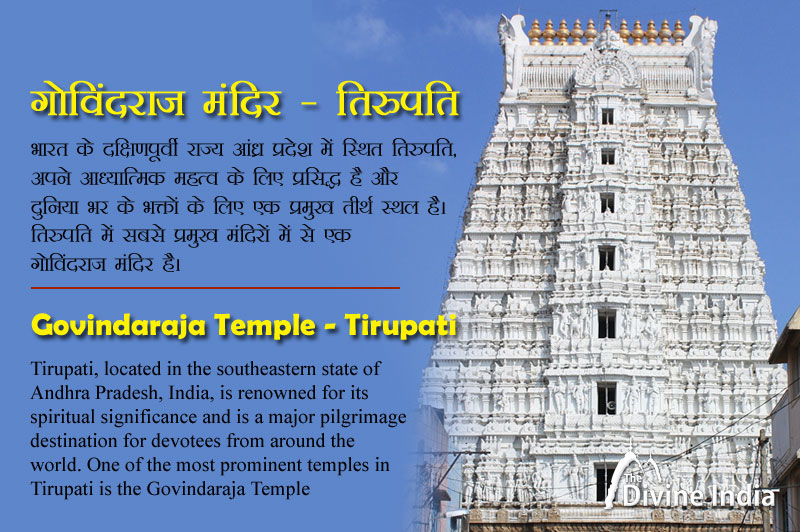 Tirupati, located in the southeastern state of Andhra Pradesh, India, is renowned for its spiritual significance and is a major pilgrimage destination for devotees from around the world. One of the most prominent temples in Tirupati is the Govindaraja Temple. This magnificent temple holds a special place in the hearts of Lord Venkateswara's devotees and offers a unique blend of architectural grandeur and spiritual sanctity.