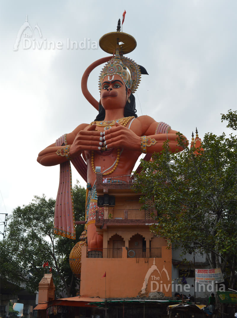 108 फुट की विशाल आकार ने इस मंदिर को पर्यटकों के बीच बहुत लोकप्रिय बना दिया है। यह मंदिर दिल्ली की प्रतिष्टिता का प्रतीक बन गया है और दिल्ली शहर के पोस्टर का एक प्रतीक भी बन गया है। मंदिर के प्रवेश द्वार राक्षस का खुला हुआ मुंह से है जो कि मरते हुए राक्षस को दर्शता है। यह भगवान हनुमान की महिमा को दर्शाता है जिसने अपने जीवन में कई राक्षसों को मार डाला था, और भगवान राम की सेवा की। मूर्ति के आधार पर मूर्ति के पैर के निकट स्थित देवी काली को समर्पित एक मंदिर भी है।