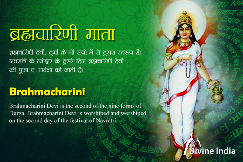 ब्रह्मचारिणी देवी, दुर्गा के नौ रूपों में से दूसरा स्वरूप है। नवरात्रि के त्योहार के दूसरे दिन ब्रह्मचारिणी देवी की पूजा व आर्चना की जाती है। सभी भक्त इस दिन ब्रह्मचारिणी की पूजा करते है।