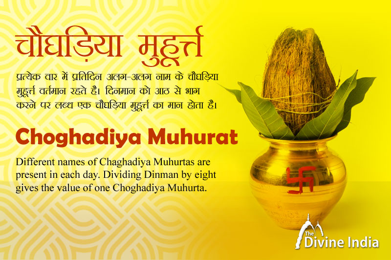 चौघड़िया मुहूर्त के स्वामी- उद्वेग के रवि, चर के शुक्र, लाभ के बुध, अमृत के चन्द्र, काल के शनि, शुभ के गुरु और रोग के स्वामी भौम हैं। श्रेष्ठ समय शुभ, चर, अमृत और लाभ के चौघड़िया का होता है। उद्वेग, रोग और के चौघड़िया मुहूर्तों का यत्नपूर्वक त्याग कर देना चाहिए।