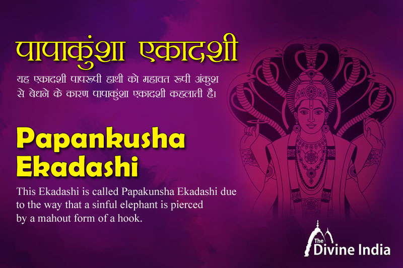 आश्विन मास की शुक्ल पक्ष की एकादशी को पापाकुंशा एकादशी कहते हैं। यह एकादशी पापरूपी हाथी को महावत रूपी अंकुश से बेधने के कारण पापाकुंशा एकादशी कहलाती है। इस दिन भगवान विष्णु की पूजा करनी चाहिए एवं ब्राह्माणों को भोजन कराकर दक्षिणा देकर विदा करना चाहिए। इस एकादशी का व्रत रखने से समस्त पापों का नाश हो जाता है। इस दिन पर भगवान ‘पद्मनाभ’ की पूजा भी की जाती है।