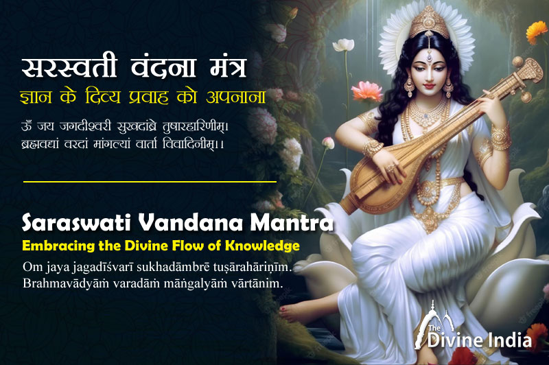 सरस्वती वंदना मंत्र एक सुंदर आह्वान है जो देवी सरस्वती के दिव्य गुणों का जश्न मनाता है। इसके छंदों के माध्यम से, हम अपने मन को ज्ञान से रोशन करने, रचनात्मकता को प्रेरित करने और ज्ञान के मार्ग पर हमारा मार्गदर्शन करने के लिए उनका आशीर्वाद चाहते हैं। सरस्वती द्वारा प्रस्तुत ज्ञान का दिव्य प्रवाह हमारे जीवन को सुशोभित करे, हमें वाक्पटुता, संकल्प में मजबूत और हमारे प्रयासों में सफल बनाए।