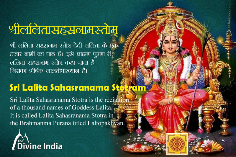 श्री ललिता सहस्रनाम स्तोत्र देवी ललिता के एक हजार नामों का पाठ है। इसे ब्राह्मण पुराण में ललिता सहस्रनाम स्तोत्र कहा जाता है जिसका शीर्षक लालतोपाख्यान है। भगवान हयग्रीव ने सबसे पहले ऋषि अगस्त्य को ललिता सहस्रनाम स्तोत्र की महिमा के बारे में बताया था। हयग्रीव भगवान विष्णु के 24 अवतारों में से एक थे। ललिता देवी यानी मां त्रिपुर सुंदरी के एक हजार नामों का पाठ करने से जीवन में किसी चीज की कमी नहीं होती है।