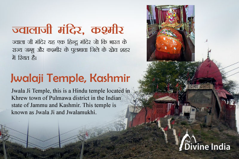 Jwala Ji Temple, this is a Hindu temple located in Khrew town of Pulmawa district in the Indian state of Jammu and Kashmir. This temple is known as Jwala Ji and Jwalamukhi. Jwala Ji Temple is considered to be the deity of many Kashmiri Hindu families. Jwalamukhi Mela is organized every year in the month of Ashadh.