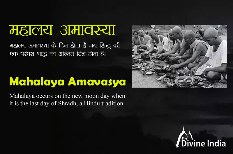 The ceremony, the death rites performed on this day, is known as Shradh or Tarpan. In southern and western India, it falls in the second fortnight (fortnight) of the Hindu lunar month of Bhadrapada (September) and immediately follows the fortnight after the Ganesh festival. It starts from Pratipada, which ends on the new moon day which is known as Sarvapitri Amavasya, Pitru Amavasya, Peddala Amavasya, Mahalaya Amavasya.