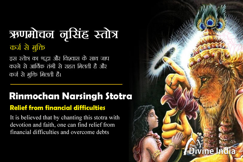 Rinavimochana Nrsimha Stotra is a sacred Sanskrit hymn dedicated to Lord Narasimha, an avatar of Lord Vishnu. This stotra is recited with the intention of seeking the blessings of Lord Narasimha to relieve or clear one's debts or financial burdens. It is believed that by chanting this stotra with devotion and faith, one can find relief from financial difficulties and overcome debts.