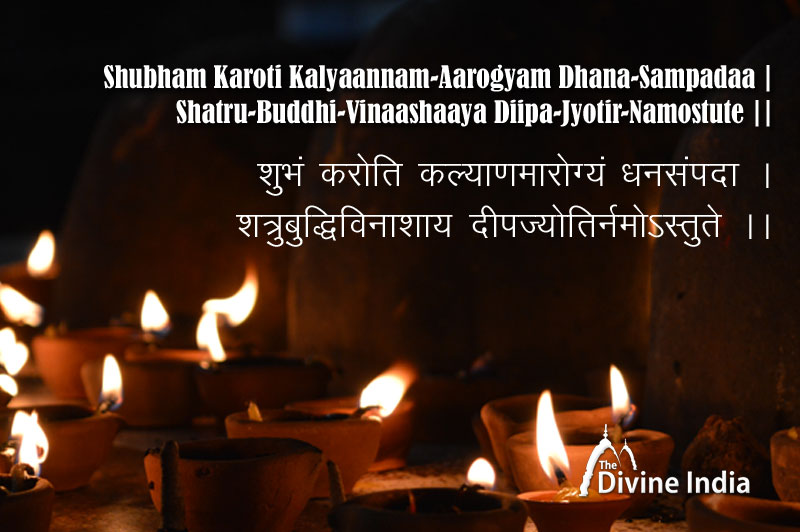 Meaning: I bow to the light of the lamp which brings auspiciousness, health and prosperity to the environment. Which destroys immoral feelings and negative power from the environment and the mind. By burning this lamp, all enemies feeling are destroyed.
