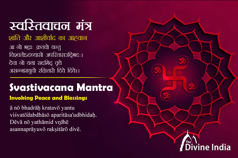 Svasti na indrō vr̥d'dhaśravāḥ svasti naḥ pūjā viśvēvēdāḥ.