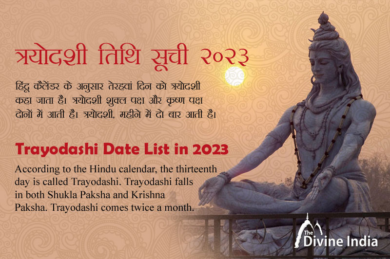 According to the Hindu calendar, the thirteenth day is called Trayodashi. Trayodashi falls in both Shukla Paksha and Krishna Paksha. Trayodashi comes twice a month. Trayodashi has its own special significance in Hinduism. The famous Dhanteras falling on Trayodashi Tithi is. Lord Shiva is worshiped on Trayodashi. Pradosh fast is observed on Trayodashi which is completely dedicated to Lord Shiva.